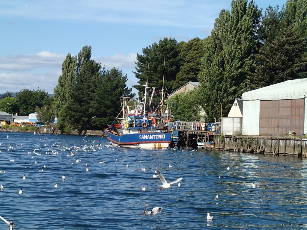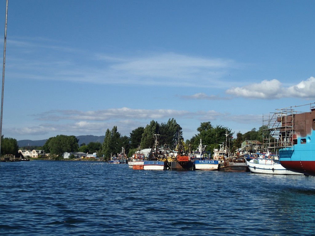 Remontée du Rio Valdivia jusqu'au centre ville où la marina ultra confortable nous attend :