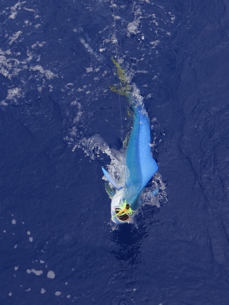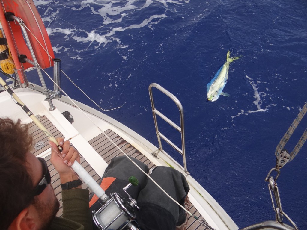 La traversée avec son fond bleu. Une des trois dorades qu'on chopées sur ce trajet là :
