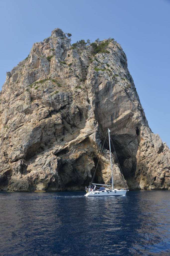 Du soleil mais pas de vent. Nous parcourons 11miles et mouillons à la Cala N Carbo 49°03’5 N 3°55’76 E pour déjeuner et nous baigner.