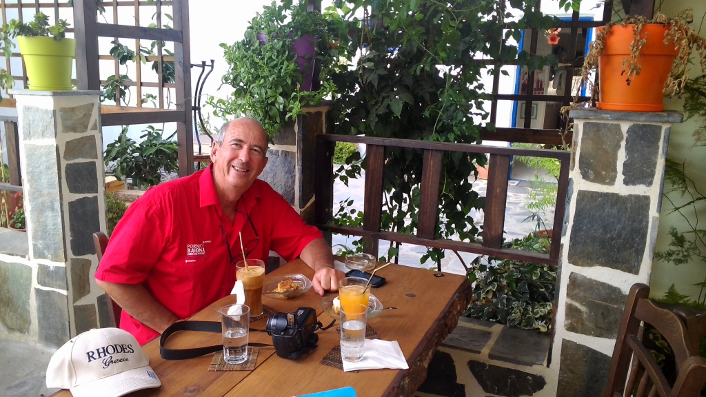 Pour la première fois nous nous réveillons sous un ciel un peu nuageux et une température en dessous des 30° (27°7), serait-ce déjà l'automne ? Après consultation de la météo et une discussion avec nos voisins anglais, nous choisissons l'option "escale à Kasos". Comme il n'y a que 23miles (environ 4h) nous avons le temps. Donc, ce matin quelques courses, le café frappé indispensable à toute bonne journée avant le départ. Le vent est bien là, nous préparons un ris dans la GV et cap au sud. Le capitaine ne boude pas son plaisir d'un bord au près sérré sur mer plate. Et puis tout à coup, plus rien, il faut repasser au moteur. En passant la pointe Kastelios, quelques gouttes de pluie... pas de quoi sortir les cirés ! puis le vent monte, navigation très agréable sous le soleil revenu. Nous arrivons au phare de Strongili sur Kasos puis nous longeons la cote vers le port de FRY (35° 25 08N/26°55 41E) L'effet de site est cause de rafales jusqu'à 28 nd et sous grand voile nous faisons des pointes à 9nd. Arrivée dans le "nouveau port" de Fry, la capitale. De grandes jetes de béton mais, le long les bateaux locaux ont envahis les quelques places et une seule borne eau et éléctricité. Le vent souffle toujours à 20 nd, nous nous mettons à couple d'une petite vedette. La chaleur est revenue, 32°2 et pas de bains possibles.