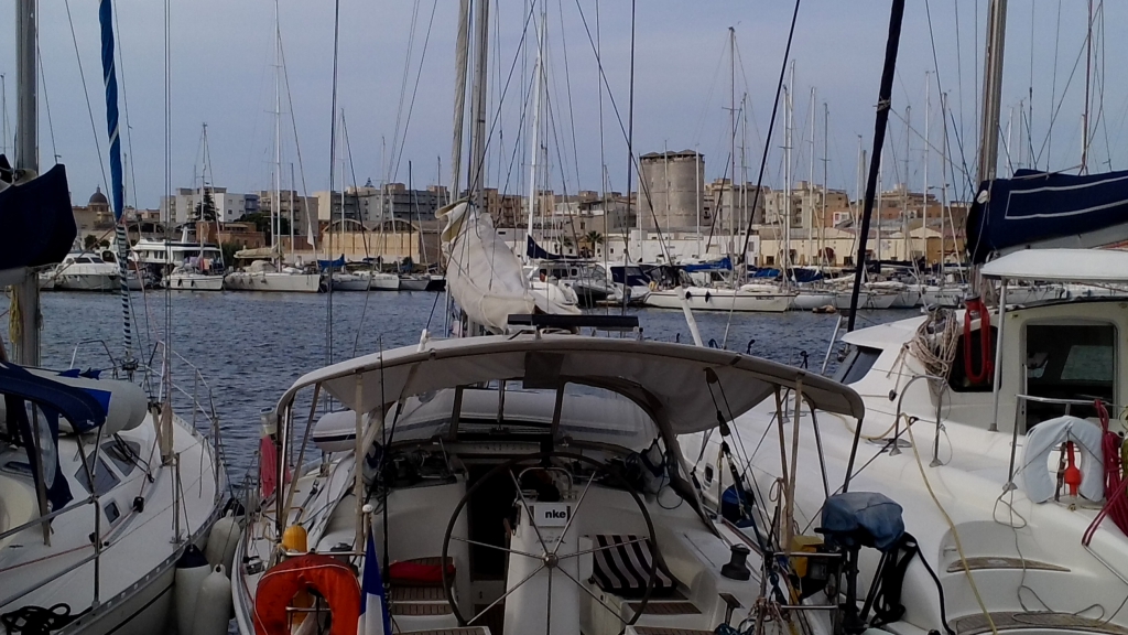 10h30, nous entrons dans la marina de Mazara del Vallo. A la VHF, il nous donne un n° de tel. Et là surprise, on nous annonce que le port est plein!!! Seule solution, continuer jusqu'à MARSALA, 13 miles plus au nord. 8nd de vent par l'arrière, ce sera du moteur. La température est remontée à 29°3.