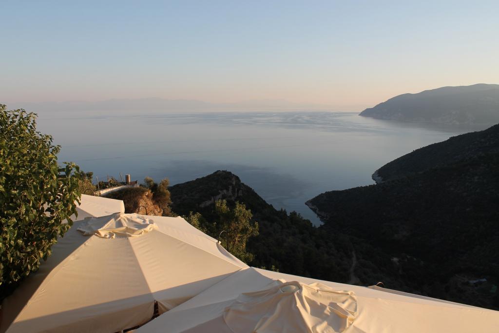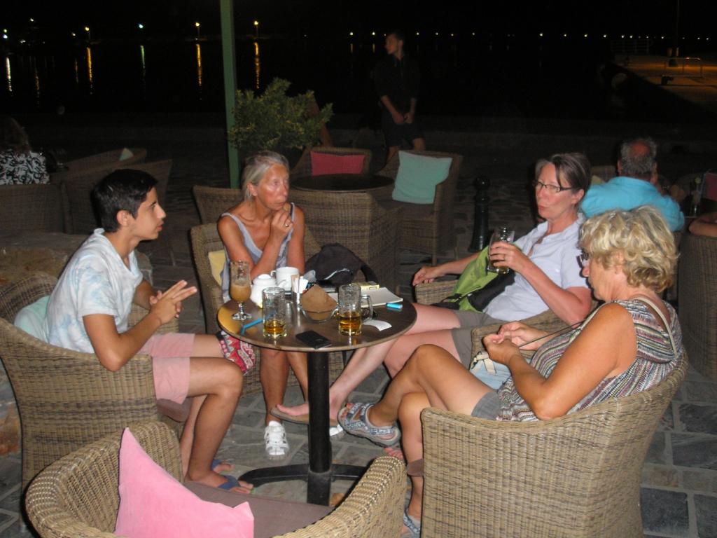 Patitiri sur l'île d'Alonnissos, malgré une arrivée en même temps que les ferrys du samedi bruyants et puant leur fumée noire, nous apprécierons la vieille ville en haut des montagnes après quelques virages étroits et cahotants dans un vieux bus rappelant les circuits scolaires en campagne ! Une belle soirée à admirer le panorama et à déguster les bons plats locaux en taverna...Tiens les « Demoiselles de Rochefort « nous attendaient sur le quai !!