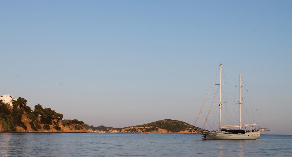 Les îles dispersées des Sporades nous apparaissent dans leur verdure et l'éclat du soleil, les nouveaux arrivants à bord sont sous le charme de ces paysages enchanteurs...