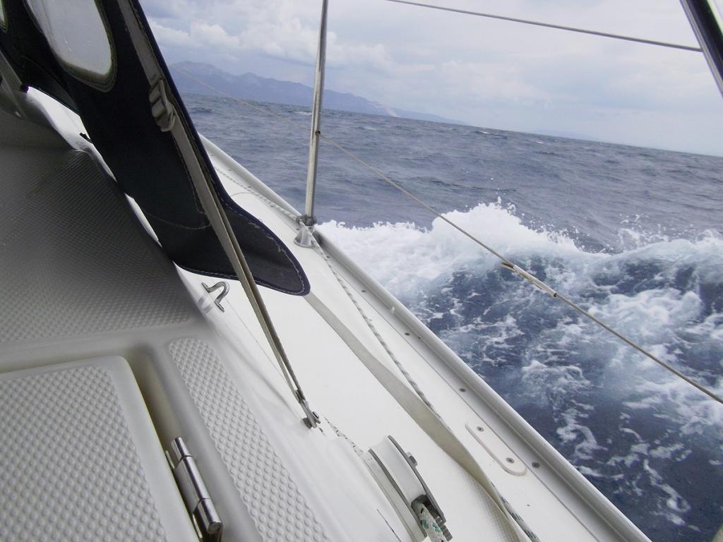 Mouillage Ormos Siféri – Skiathos , toujours aussi rouleur dans cette baie fréquentée par les ferrys et autres promène-c... Trois occasions aussi de remonter l'ancre sur le pont à la nuit tombante car nos voisins proches de grande taille craignaient pour les distances d'évitement !! Même à minuit, équipage à poste !!