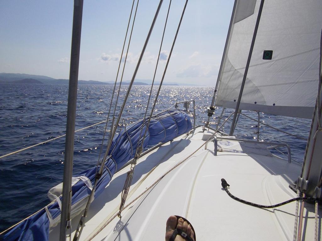 Çà y est nous sommes au complet, les amarres sont larguées avec pour objectif un petit mouillage sur les côtes de Théssalie... Toujours la plénitude et le silence dans des lieux à l'écart du brouhaha des ports et des hommes... La croisière en famille commence dès que les sacs sont vidés et que le premier bain de soleil est pris...
