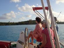 Enfin nous pouvons naviguer, l’attente a été longue sur le terre-plein du chantier, nous sortons par la côte sud de Provo que je fais pour la troisième fois en passant par five keys et la passe Ouest des Caicos, toujours exceptionnel ce banc à 3m de profondeur, avec des bleus magnifiques. Pétole, nous nous arrêtons pour nous baigner sur le coup de midi et explorer la faune sous-marine ,philippe s’aventure assez loin puis nous mettons le cap sur la première île des Bahamas : Mayaguana ;nous arrivons le soir et mouillons pour diner tranquillement sous le vent de l’île ;puis nous partons pour une nuit de nav avec les quarts de nuit. Départ au moteur et à 1H du matin nous pouvons naviguer à la voile. Nous arrivons à 12H30 à Clarence Town qui est la partie sud de Long Island où nous mouillons loin de la ville, nous ne débarquerons pas .Et nous repartons le Samedi 11 février à 4H du matin de nuit. Avec Gonzague nous assurons le départ puis les quarts de nuit pendant que les autres dorment. Nous décidons de ne pas nous arrêter à Georges Town, le temps presse en effet si nous voulons arriver à temps à Nassau pour le vol de retour prévu ; nous ne verrons donc pas le spectacle des requins grouillant dans le sang dans le port de Georges Town où les pêcheurs rejettent le reste des poissons pêchés. Il ne fait pas bon de s’y baigner. Nous avons préféré profiter des Exuma qui sont une merveille de la nature et aussi un paradis pour la navigation. Nous rentrons sur le banc des Exuma par le Rudder Cut .Le Cut est une coupure de la barrière de corail qui permets de passer en bateau. Dans les Bahamas, il y en a beaucoup qui permettent de tracer la route que l’on veut faire pour rentrer dans un banc (« Sound ») ou passer d’un chapelet d’îles à un autre. Rudder Cut Cay est une île où nous pouvons goûter le calme des Exuma pour la première fois. Derrière la barrière de corail ,il y a des endroits où on ne peut naviguer car les fonds sont inférieurs à 1m,il faut donc tracer sa route en zigzaguant ou repasser en mer profonde; heureusement le logiciel de navigation Maxsea est performant et nous propose toujours des routes pré tracées, ce qui nous aide beaucoup ; Dimanche, nous remontons côté mer dans une autre île Compass Cay ,île de rêve ,les femmes à bord me poussent à mettre toujours le bateau le plus prêt de la plage, mais cette fois nous échouerons sur le sable doucement avec la marée, mais nous pouvons redécoller à 15H30,cette fois ci la leçon a porté, je ne me laisserai plus influencer par les sirènes; les îles sont toutes différentes, certaines sont privées. Nous naviguons sur le banc que nous ne quitterons plus et le soir nous mouillons à Long Rock. Départ le lendemain à 5H30 pour pouvoir profiter encore d’un lieu magique Allans Cay où nous retrouverons plusieurs bateaux pour profiter du snorkelling avec l’annexe et visite d’une île où le iguanes sont par dizaines, il faut faire attention pour ne pas marcher dessus et les effrayer, en effet ils sont dépourvus de vue et si l’on ne bouge pas ,ils passent juste à côté de vous sans vous voir. Le lieu est tellement magique que comme par hasard, certaines ont oublié leurs lunettes et il nous faudra y retourner. Puis départ à 11H pour arriver à Nassau au moteur par le coté est. Nassau ville américaine avec de superbes propriétés au début du chenal n’a rien à voir avec les Bahamas, c’est une agglomération urbaine où l’on trouve de tout mais très cher ; la nuit par exemple à la Marina Nassau Harbour Club à 96 euros ; mais il faut reconnaitre que pouvoir trouver ce que l’on veut est quand même intéressant. Je suis fatigué de cette remontée rapide, ce qui me vaudra une chute dans le port en voulant envoyer un message sur mon portable. Le port est totalement invisible de la rue, aussi comme nous pensions que Jean Luc arriverait le soir et nous tenons la garde pendant un moment sur la rue. Durant cet épisode, nous avons eu plusieurs incidents techniques, la commande guindeau manuelle n’a plus marché, heureusement nous avions la commande radio qui nous a dépanné. L’alimentation de l’iridium ne fonctionnait plus et l’hydro générateur qui nous avait bien aidé dans les nuits de navigation a été tordu du fait d’un bout resté attaché pendant que je le remontai à l’aide d’une poulie, mécanisme efficace mais traite ! Heureusement, j’ai pu bénéficier de la compétence de nos 2 ingénieurs ICAM de formation, Philippe et Gonzague qui me permettront de résoudre un certain nombre de problèmes techniques durant la croisière et qui réparerons le matériel à leur retour en France permettant à l’équipage suivant de ramener le matériel en état ou neuf. C’est manifestement une bonne solution dans l’organisation prévue de NOEE.
