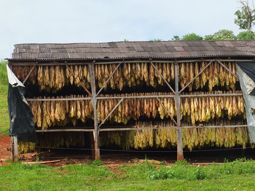 C’est la région du tabac, et ce doit être la fin de la saison car nous voyons de nombreux « séchoirs » de feuilles de tabac sur le chemin.
