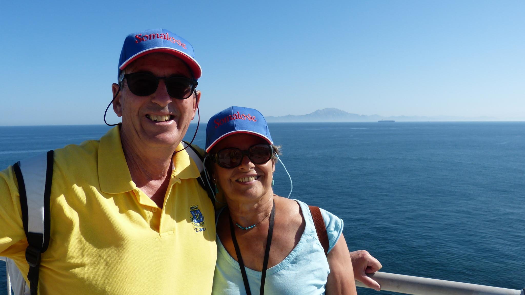 Aujourd'hui visite du rocher. Ce matin nous allons faire quelques courses et en particulier du Whisky. Claude revait d'une gopro.... A Gibraltar, c'est intressant donc il regarde, il réfléchit, écoute les conseils de Patrick et ... il craque. Quel beau joujou ! enfin quand il saura bien s'en servir et que la batterie sera chargée !. Dans un premier temps, on essaye le manche pour des selfies avec mon téléphone et on s'amuse bien.