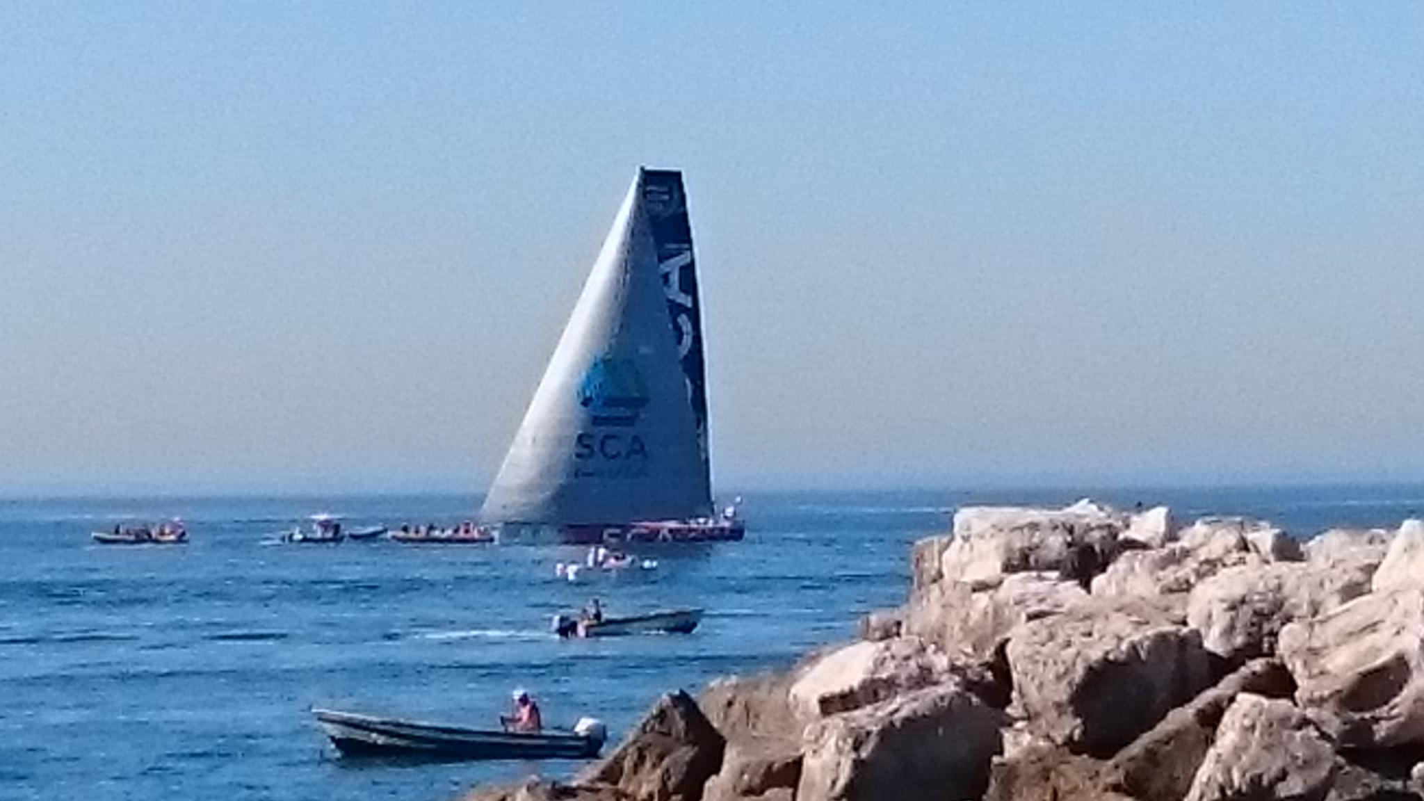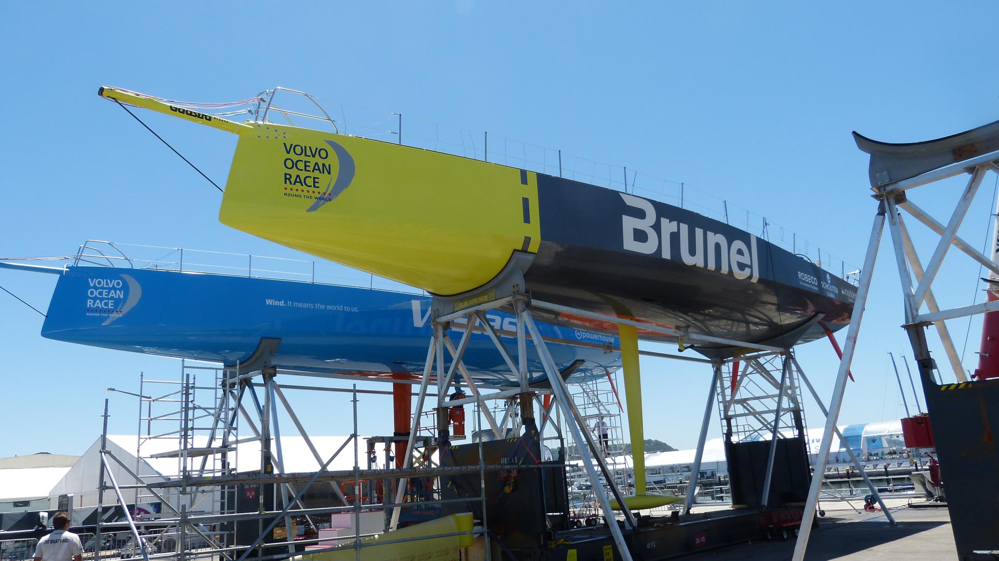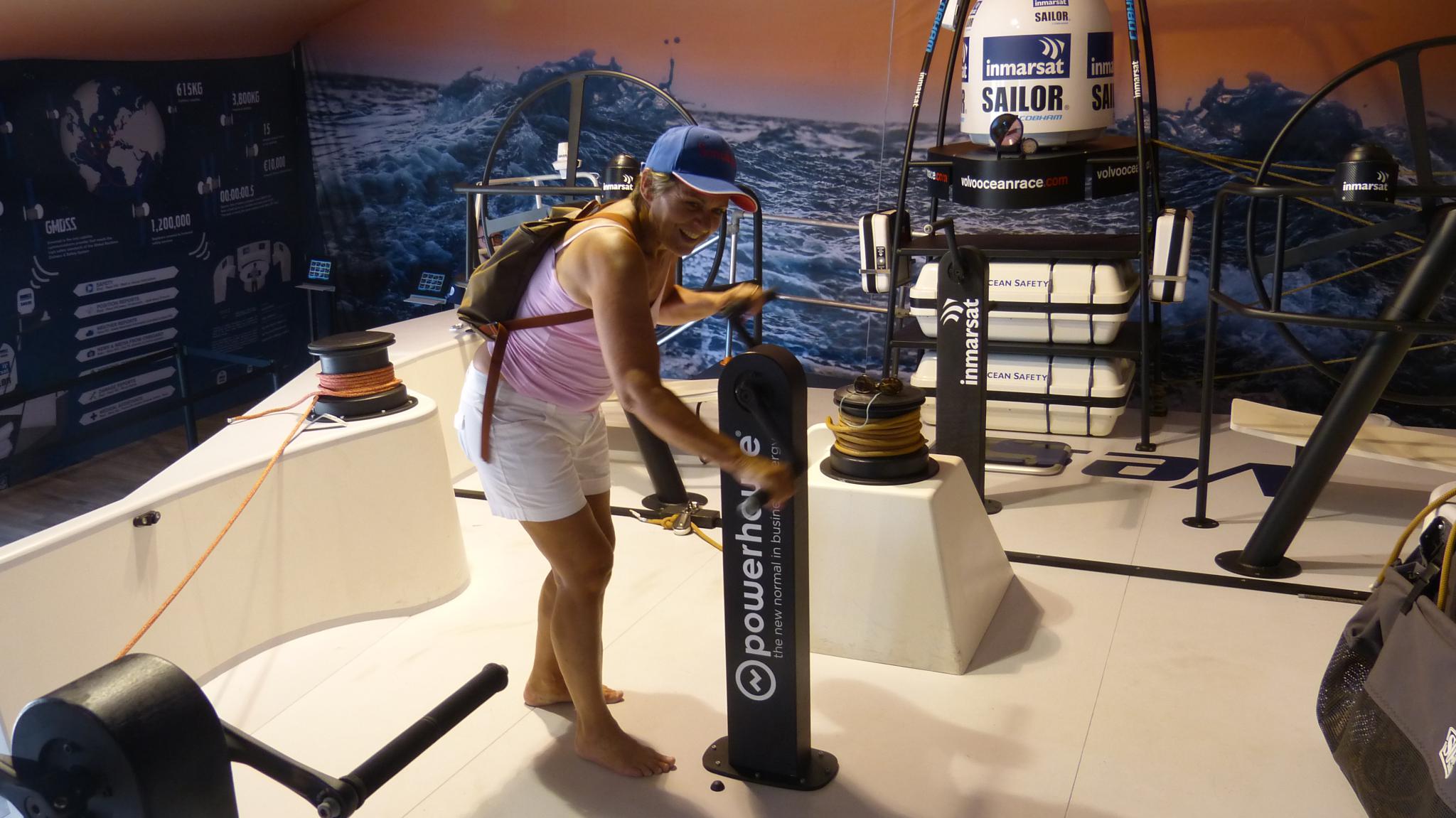 COURSE VOLVO RACE : Ce matin nous n'avons pas mis le réveil pour voir arriver les premiers mais par chance, SCA est passé juste devant nous vers 9h, très beau spectacle vu de notre marina. Notre programme étant d'aller au village de la course, nous bénéficions une nouvelle fois des services de la marina pour aller à la gare. Quel spectacle !!! Ils ont là à quai et les 3premiers sont déjà au sec. Les équipes telles des fourmis bossent sur les bateaux et les démontent complètement. Claude rêve ... Nous sommes accueillis au stand SCA, le chargé de comm nous explique plein de chose sur le sponsor Demak up et m'offre un maquillage et une pose de vernis. Le vernis couleur magenta, bien sur ! Un petit tour dans le hangar réparation de voiles, elles sont vraiment immenses..., j'en ai mal au bras de penser qu'il faut les hisser sans winchs électriques ! Une replique de ces bateaux tous identiques nous permet de prendre conscicnce de l'inconfort général et de s'y croire. Je préfère Somalove !!!