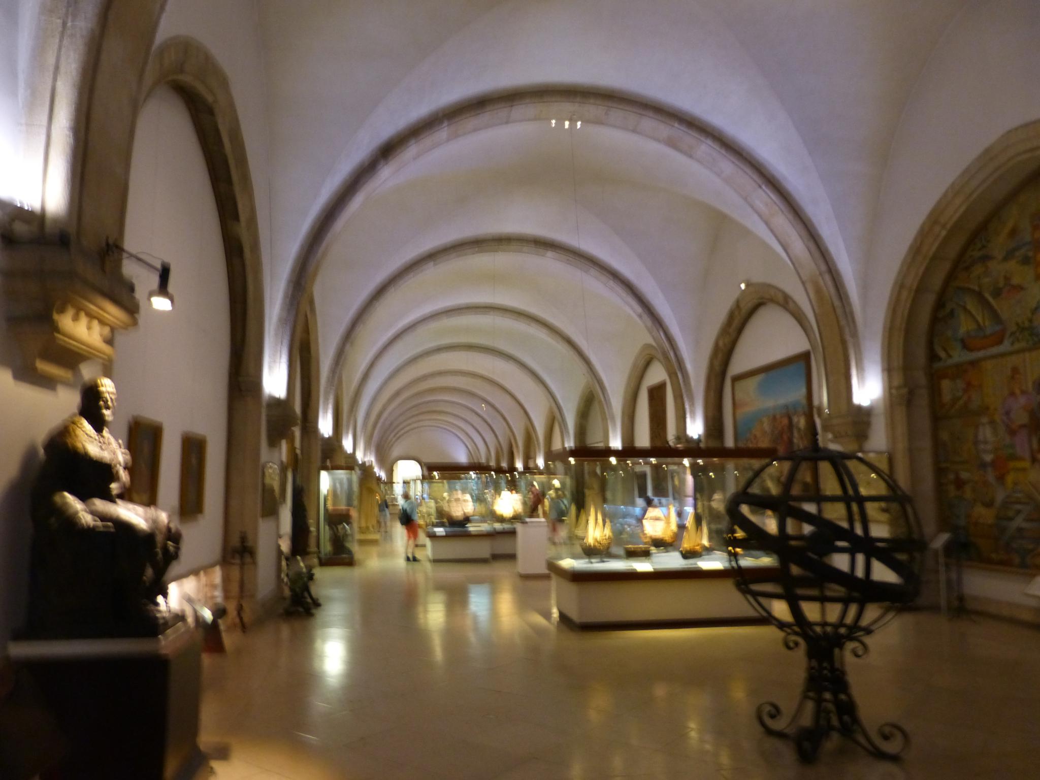 QUARTIER BELEM : Nous reprenons le train pour aller dans le quartier BELEM où nous allons voir le musée de la Marine. Il se situe dans une aile du monastère St Jérome, édifice impressionnant qui a résisté au tremblement de terre de 1755, comme la tour de Belem que nous avions vu lors du voyage aller. Les travaux de ce gigantesque monument ont duré 1 siècle et il a bénéficié des largesses de Vasco de Gama aux retours des Indes.