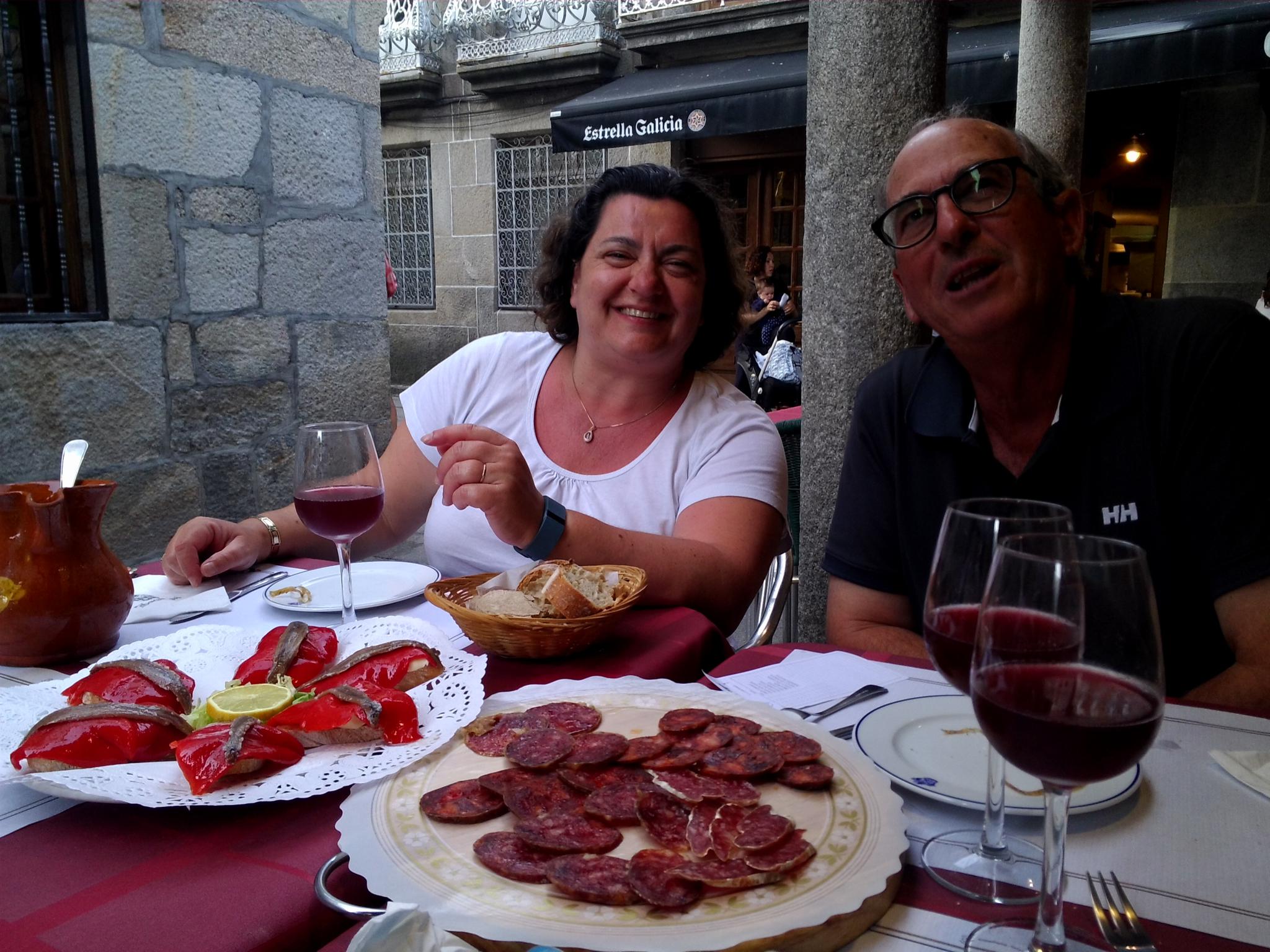 Maman et Claude retrouvent avec grand plaisir les souvenirs de la Pornic-Baiona qu'ils avaient faite en 2010, et donc ce soir pèlerinage dans la rua Ventura Misa (dite rue de la soif par les pornicais) très réputée pour son nombre effarant de bars à tapas (dixit le guide du Routard)