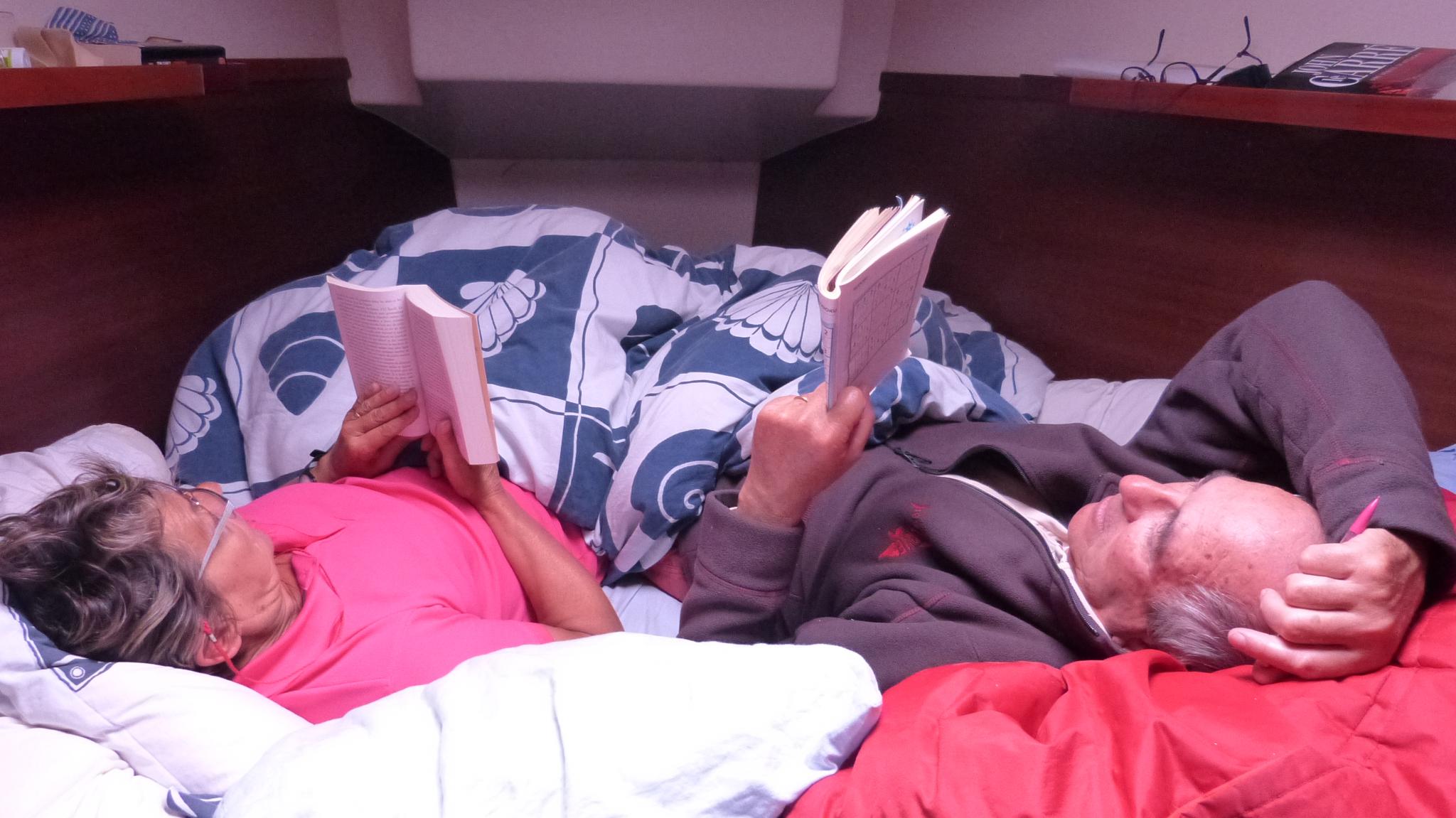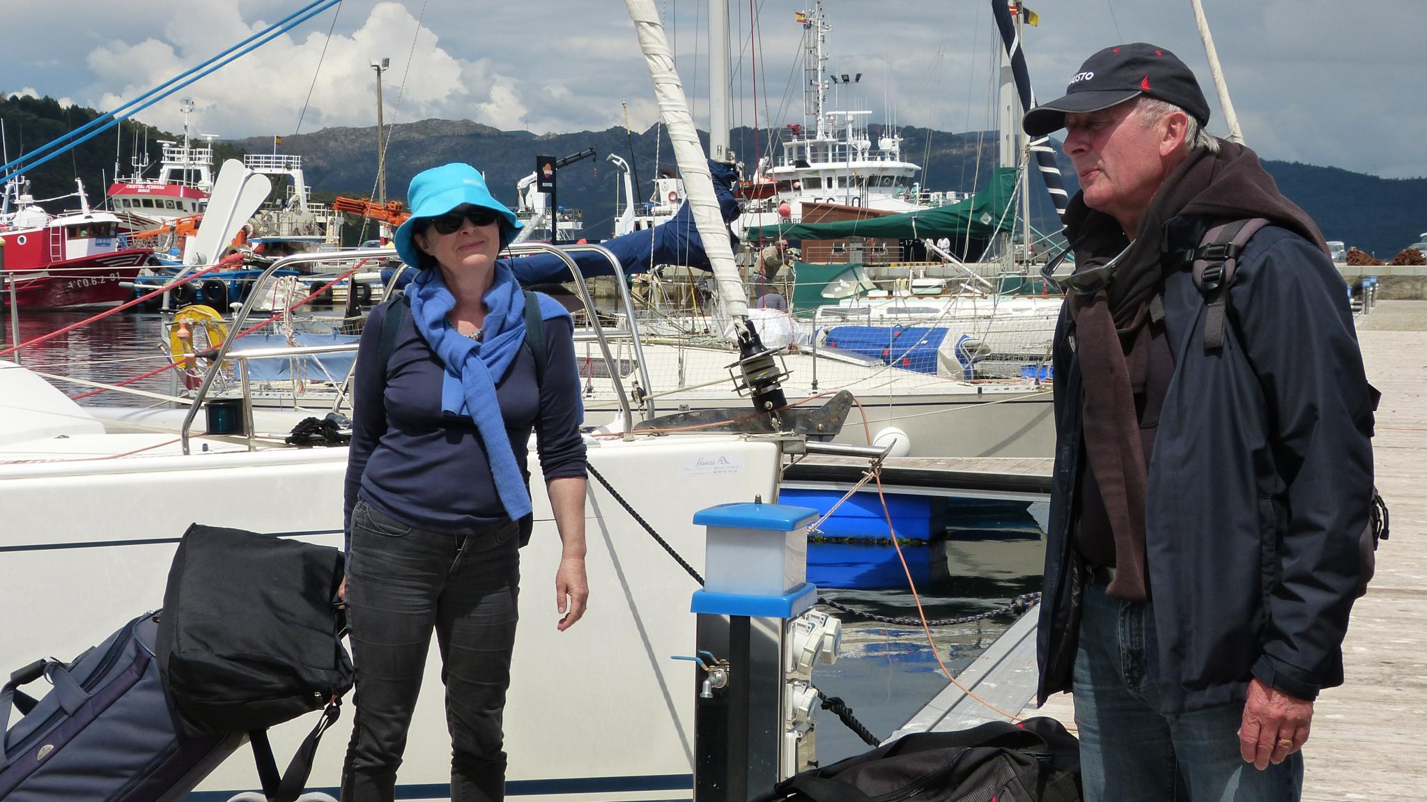 Aujourd'hui, départ de Jean-Claude et Catherine. Le réveil sonne à 7h30. Il ne pleut plus et le ciel semble se dégager doucement, il fait 14°6, pas bien chaud et le petit coup de chauffage dans le bateau est le bienvenu ! A 9h30, départ sur le ponton au son de l'harmonica de Jean qui nous avait caché ce talent !