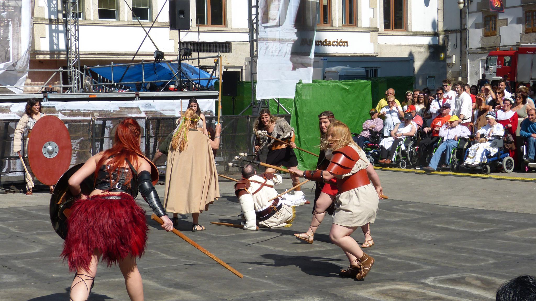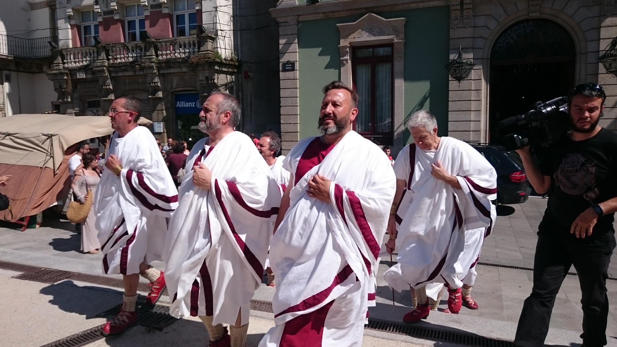 Priorité ce matin , trouver le filtre Volvo pour le moteur. Nous partons dans notre Skoda vers la marina seca à la recherche du magasin. Miracle, il est là devant nous et nous leur achetons le dernier ! La journée visite peut commencer. Étape à BETANZOS, ancien port aujourd'hui ensable. Superbe promenade dans la vieille ville, maisons anciennes avec leur galeries de verre et le long du Rio bordé de hórreos (séchoir a grains) multicolores. Ensuite nous partons pour LOGO. Ville romaine de 100 000 ha célèbre pour sa muraille, l'une des mieux conservée d 'Europe. Nous croisons bon nombre de personnes habillées en romains, celtes et gladiateurs. Ce sont les 3 jours "Arde Lucus MMXV ". Défilés, spectacles de rues... Pour les adultes comme pour les enfants, c'est la fête !!!