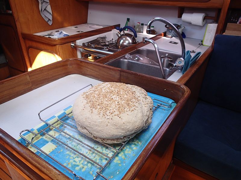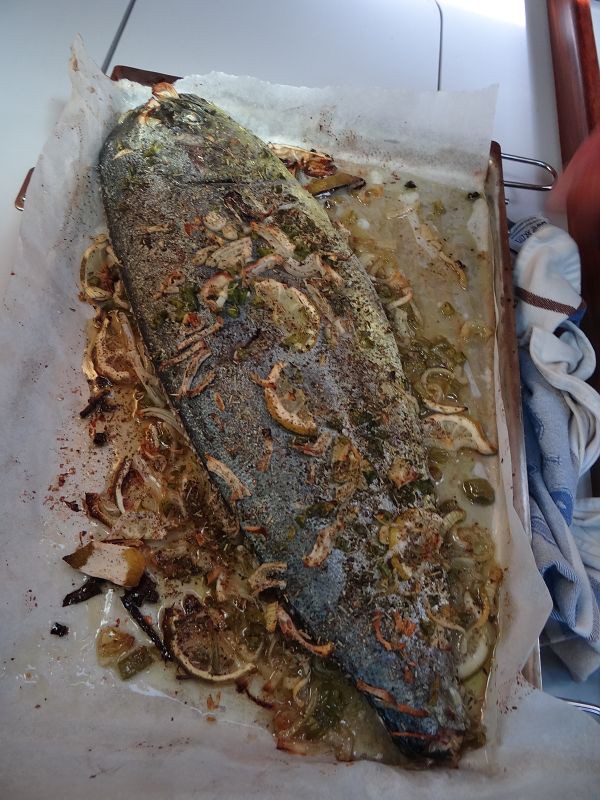 Le premier poisson péché était donc probablement un espadon, peut-être voilier (marlin) ; pour ceux qui ont deviné juste, le prix est à bord, on vous attend ;-) Les autres sont dorade coryphène puis sériole. La suite des repas en photo, sont "pain maison aux graines de lin qui sont mal collées donc c'est dommage, par la suite on les a mises directement dans le pétrin c'est bien meilleur" et "repas d'anniversaire gourmet de chez le traiteur d'Auterrive - La Mère Nicole : foie gros, figues confites, boudin, ... mmm".