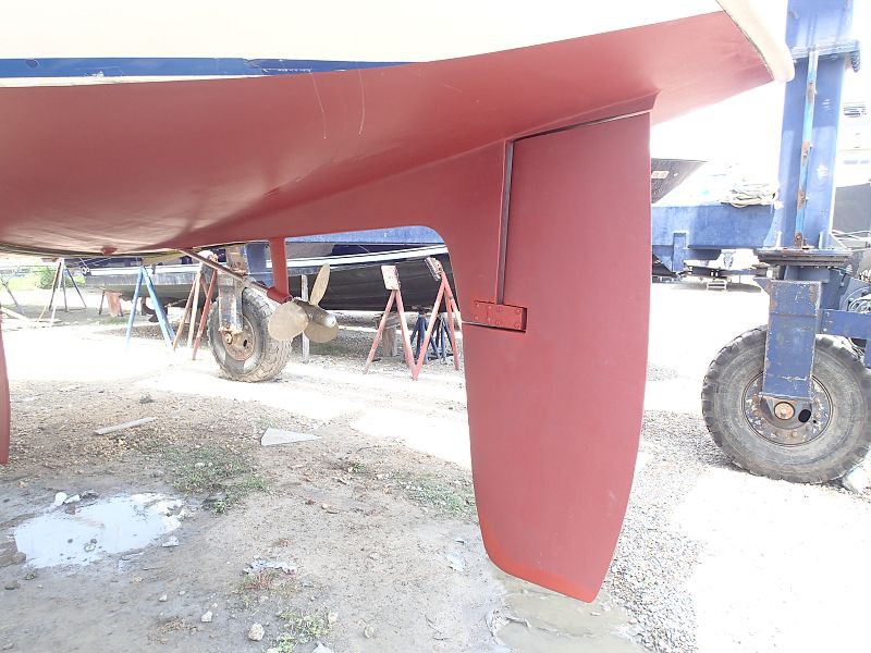 Voilà ! Igamor est sorti du chantier tout beau tout neuf. C'était la semaine de course pour arriver à tout faire, mais le résultat est à la hauteur : reforcement du skeg, couche d'antifouling, polissage de la coque, remplacement et alignement des paliers du safran ...