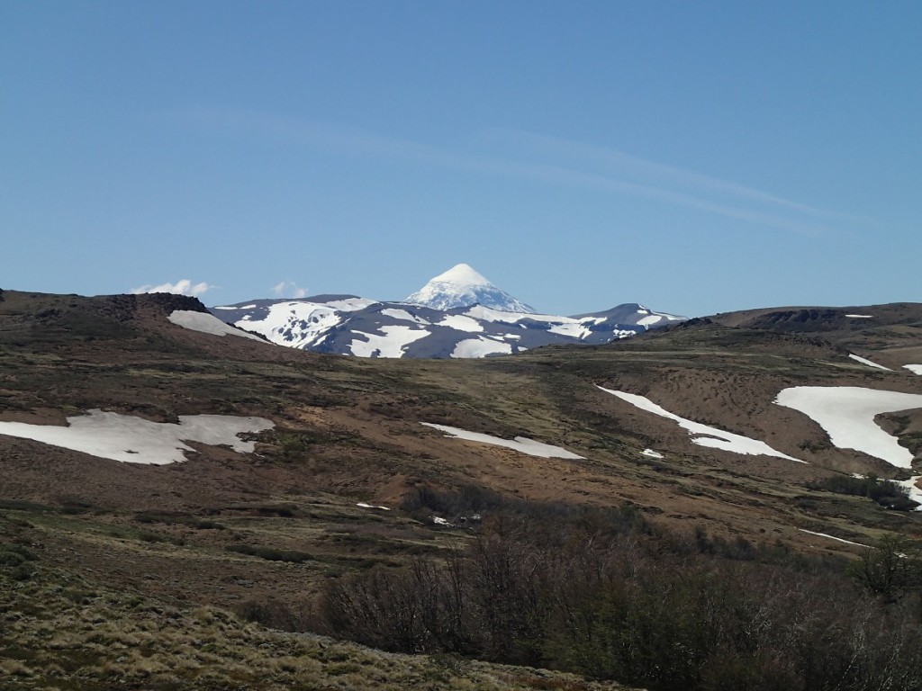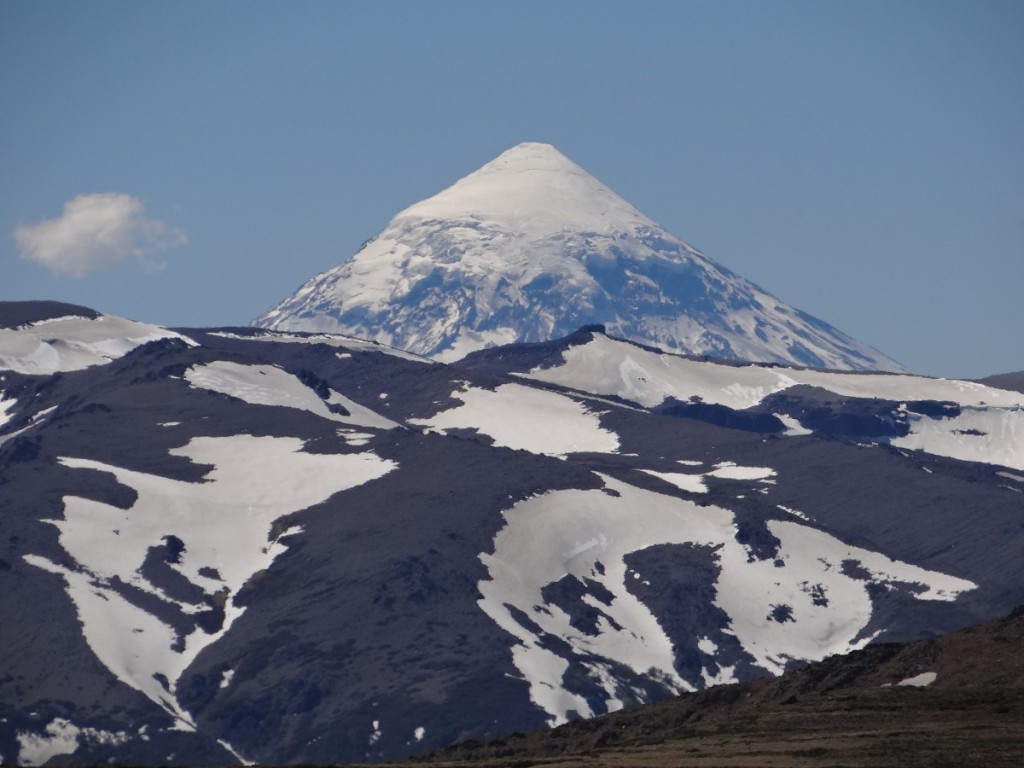 De l'autre côté de la frontière c'est le parque national Lanín dominé par le volcan du même nom :