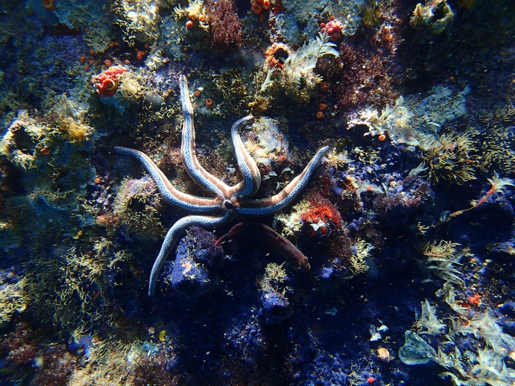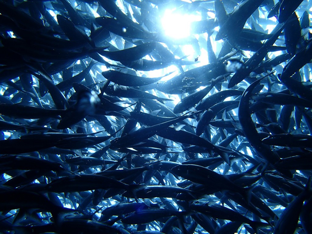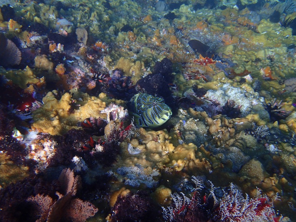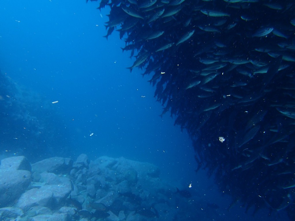Un compact banc de poissons acculés dans un recoin de la falaise ... :