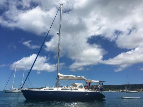 Fort de mon expérience, je voulais un voilier aluminium. C'est Maria qui a trouvé la perle rare, elle est à Port-la-Fôret en Bretagne. C'est un monocoque de 12 m en aluminium de 1984. Un des tout premiers bateaux réalisés par le chantier MAG, ex- Pouvreau, sur plans Vaton. Selon nos informations, on serait les 9ème ou 10ème propriétaires et il a été entretenu et amélioré à chaque fois. Vous le découvrirez avec nous au fil du voyage.