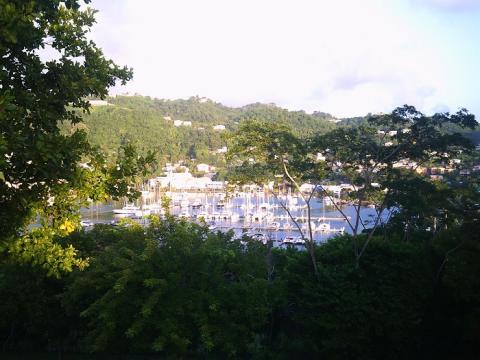 La marina est aménagée au sud de la capitale Saint-Georges, dans un ancien trou à cyclones (le Lagon) et présente les inconvénients de ses avantages : si les bateaux sont bien abrités de la houle et du vent, les équipages souffrent de la chaleur, du peu d’air la nuit et… des moustiques ! Nous avons fini par installer des moustiquaires qui n’avaient pas été indispensables jusqu’à présent. Mais en étant à quai, le bateau est branché sur le 220 V et les ventilateurs peuvent tourner sans compter, et les anti-moustiques sur prises fonctionner !