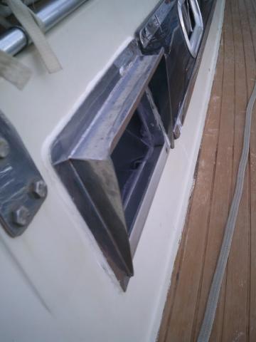 Une autre réparation nous attendait également : le protège-hublot de la salle-de-bains arrière, en inox qui commençait à se décoller. Cette pièce peut être meurtrière pour les chevilles si l’on n’y prend pas garde lors d’un déplacement rapide, mais permet de reculer l’impact des embruns ou de la pluie sur le hublot…