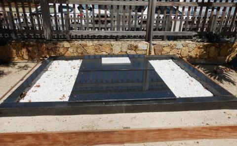 A l’entrée arrière du cimetière, une dalle noire se remarque : c’est l’ossuaire, dans lequel on recueille les restes des défunts quand les raz-de-marée cycloniques ont envahi et perturbé l’agencement serein des tombes dans le sable.
