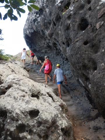 Depuis Flamands, un sentier à flanc de morne traverse une forêt sèche où les arbres n’ont plus que quelques fruits, ou de rares feuilles, entre les cactus cierges, passe sous d’énormes boulets de lave que le vent et l’érosion ont travaillés, arrachant les pierres prisonnières et créant des cavités à l’intérieur, et leur donnant des formes d’animaux fantastiques…