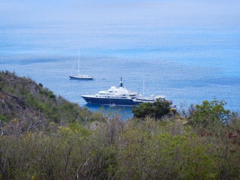 Pascale et Bertrand, sur « Antinéa », un Amel 54, font également halte dans l’Anse Colombier. Nous nous sommes rencontrés à la marina Bas-du-Fort, et avons sympathisé. Arrivés en Caraïbe depuis une petite année, ils souhaitent parcourir les beaux sites maritimes de notre planète, et projettent donc, après cette partie de l’Atlantique et poursuivre leur exploration au-delà du Canal de Panama. Avec eux, nous avons vainement cherché la piscine naturelle de Petit Cul-de-Sac, puis visité d’autres anses de l’île. Avec eux, également, nous partageons des moments conviviaux sur nos bateaux, relatant nos découvertes sous l’eau ou dans les autres îles caribéennes.